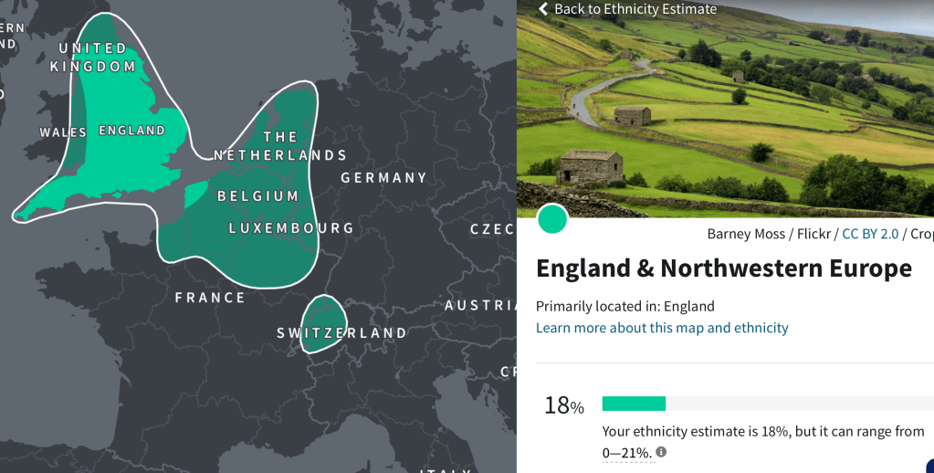 So whilst my ethnicity has changed slightly since first testing (and I am sure I have a photo of the original results somewhere) ancestry DNA confirmed to me at a minimum that my research was very well aligned with the results.